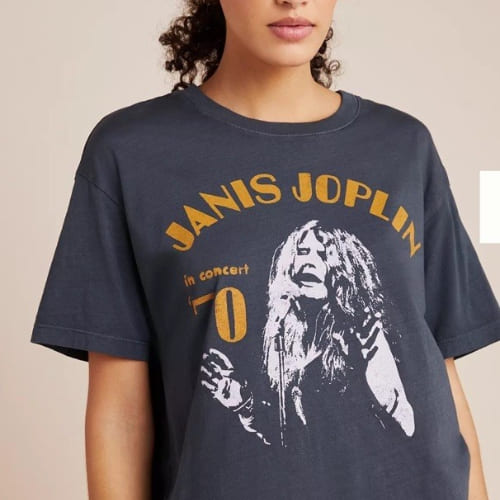 A soft, vintage-inspired graphic tee featuring the legendary Janis Joplin, blending iconic style with a cozy, worn-in feel.